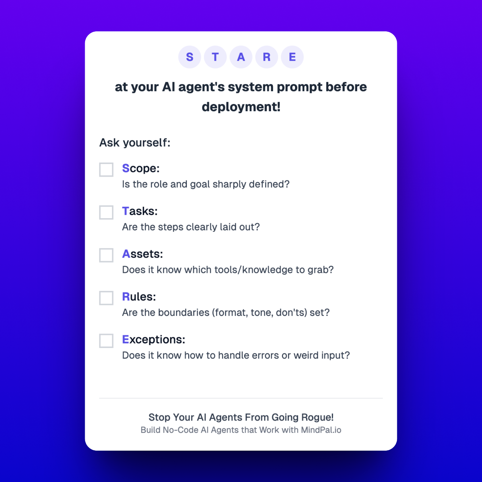 Forget the complicated code. We've translated their core operating principles into five straightforward strategies you can use right now in platforms like MindPal to build an AI workforce that doesn't just follow orders, but actually gets the job done reliably. At the end of the blog post, you'll also find a simple framework that you can apply to any AI agents you're building to make them less rogue, more rockstar.
